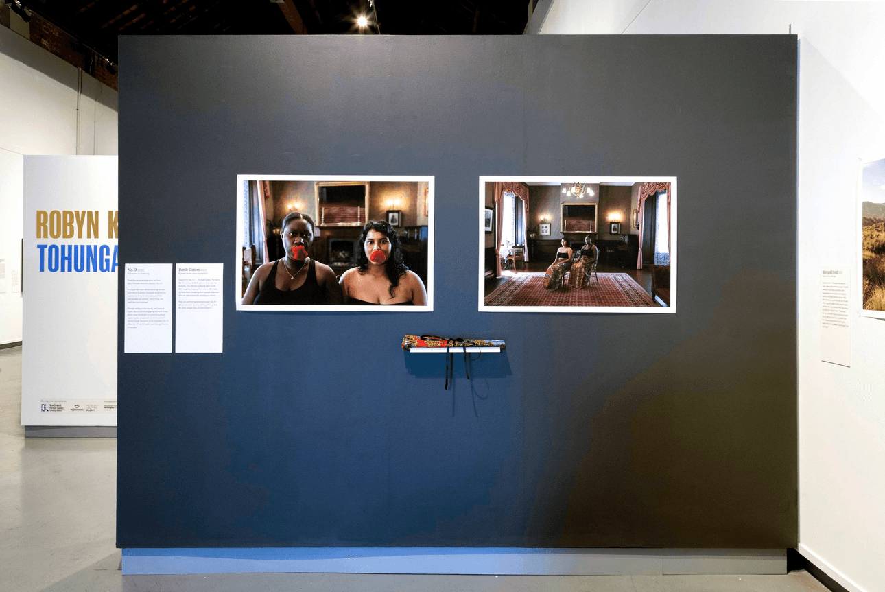 The first part of Chinniah’s collection, from a body of work called Melanin Rising, challenges our collective – and my personal – silence. The exhibition opens with six larger-than-life portraits of six individuals, each wearing the cultural attire of their heritage, each photographed outdoors. It’s a powerful statement, centring people who have been “othered” squarely within distinctive landscapes of New Zealand, allowing them to express all the elements of their identity. It’s also powerful that these individuals take front and centre both literally and metaphorically – there’s no sense of the person behind the camera.