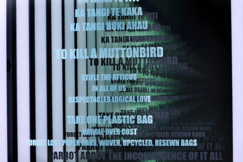 The project was developed as a way of voicing concern over the problems humanity faces in light of global warming, pollution of our waterways and oceans, and the waste crisis. I took a leaf out of Ralph Hotere’s book and decided to commission six indigenous writers and poets to compose poems that lamented the state of the planet. I had been contemplating working with stacked fluorescent tubes for a while because they form a repetitive vertical pattern alluding to roimata toroa; the tears of the Albatross which became a fitting visual allusion to lamentation.