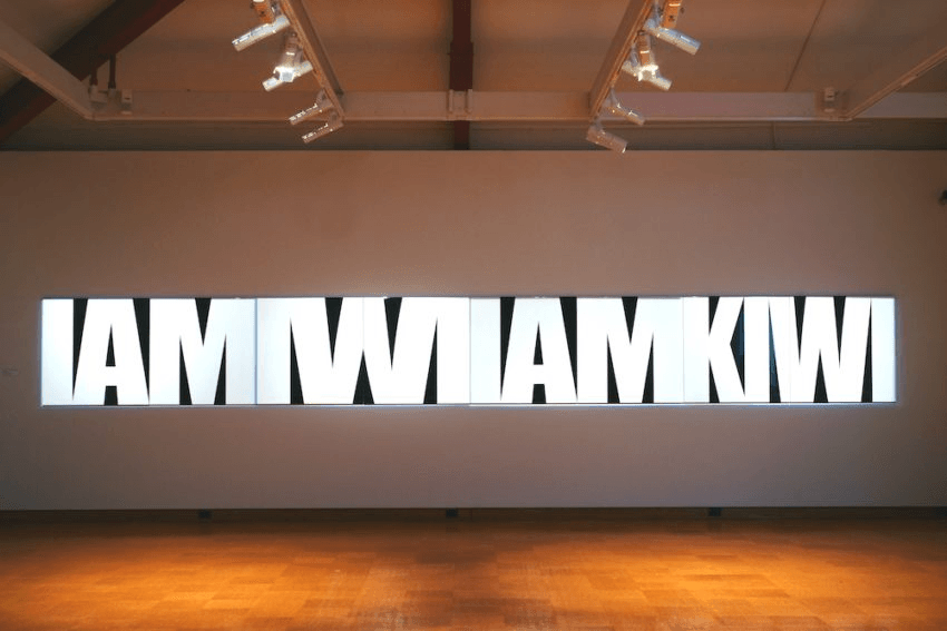 I was aware of the use of text in Māori wharenui as early as the 1840s when carved text was used to identify carved ancestors. So text became a vehicle to engage viewers in the work. Initially text was used sparingly but increased in 1998 with the KOHA exhibition when chocolate fish were used to create the word koha in caps and textual statements relating to customary fishing rights generated slogans like ‘This is not snapper this is a Tamure’. While object/image and text shared the stage for a number of years text reigned supreme in the IAM series of painted text on stainless steel, examining the construction of identity. Interestingly, the body of work that I created during this period fell on deaf ears.