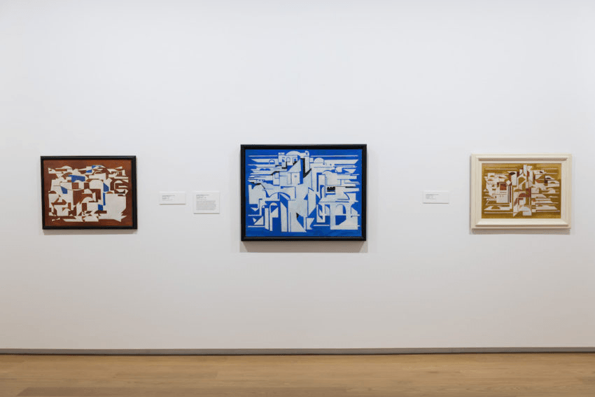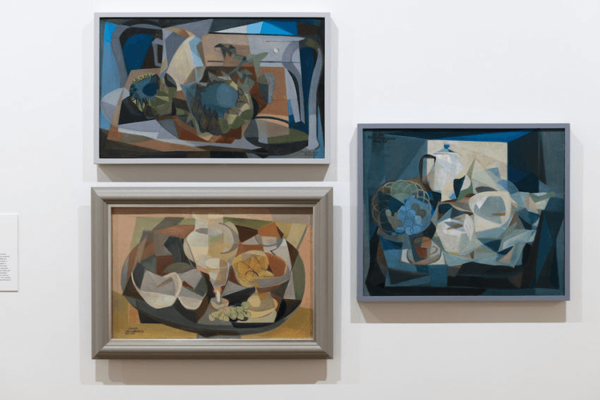 Louise Henderson: From Life is revelatory. The rich breadth and depth of the artist’s seven-decade-long practice unfolds chronologically, charting the artist’s stylistic progression from modest landscapes to cubism-influenced abstraction and on to more intuitive and lyrical scenes. Perhaps, like me, there will be paintings in the show that re-emerge from the edge of your psyche – Portrait of Betty Curnow, 1954, and The Lakes (Triptych), 1965 – works that occasionally crop up in anthologies of New Zealand art (though much less frequently than they should). If you’re not intimately familiar with her practice, Henderson’s dramatic changes in style can make it easy to think that such works were not painted by the same artist. Perhaps this is why Henderson is not as well known as some of her contemporaries like Colin McCahon, Gordon Walters and Rita Angus, who had more immediately distinctive styles.