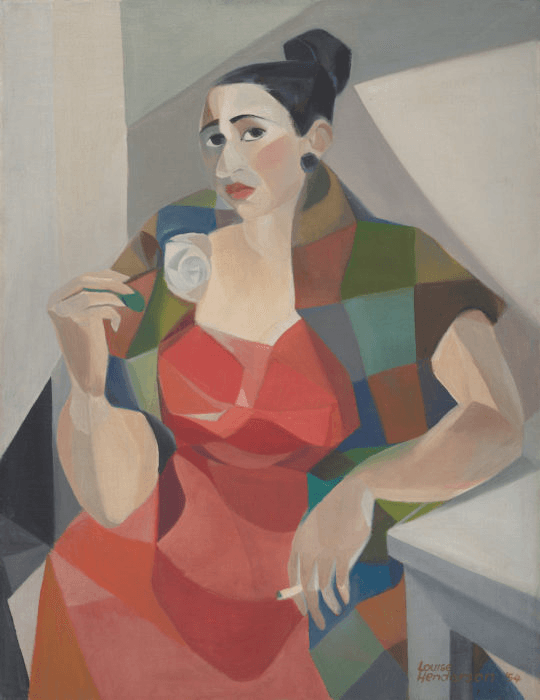 Cigarette in hand, Dame Louise Henderson stares straight down the barrel of the camera. Her gaze is magnetic. So begins this exhibition, a partnership between Christchurch and Auckland art galleries, with the artist positioned front and centre.