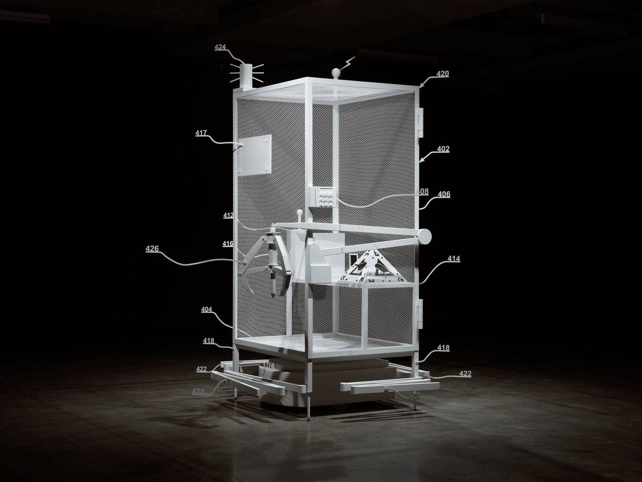 Of course, it’s also collecting data about how viewers behave – how long you spend with work, your movements – it maps each viewers experience of the museum. In the context of me making a show about extraction – of data, resources and the hierarchies and histories of extraction, I wanted to make that process that is central to the museum experience a part of that story. So there is an augmented reality layer as a part of my exhibition which really focuses around what your role as a viewer is, who’s being extracted from and what is happening through this device. First, you look at a bird in a cage patented by Amazon (perhaps the biggest user of data for business globally), you then experience yourself as being emotionally mapped by rare earth elements, and then your engagement data taken on the “o” is revealed to you explicitly.