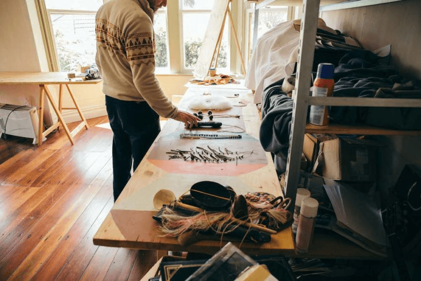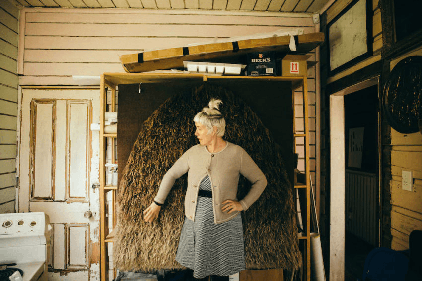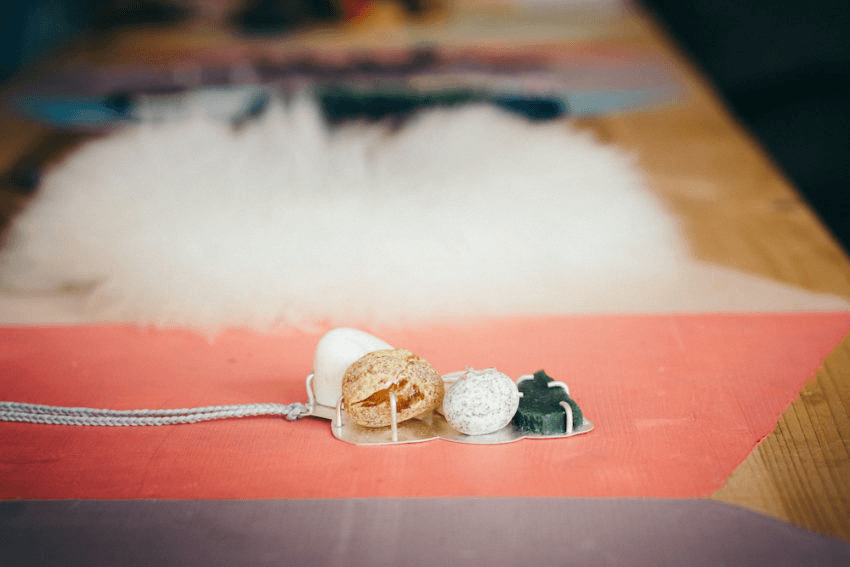 Lisa: I collect materials and also I collect online off Instagram and other places. Actually, that’s more of a kick-off for pieces than materials now. I always think that I’ve discovered everything I can on Trade Me, but then I just discovered another great category. It’s just called craft or something. Amazing stuff there. Like I just bought this: a coconut shell bag! With a zip! Do you believe it?! I’ve just reinforced it and now I’m going to paint it somehow, I’m not sure yet. $10! It took him weeks to send it to me.
