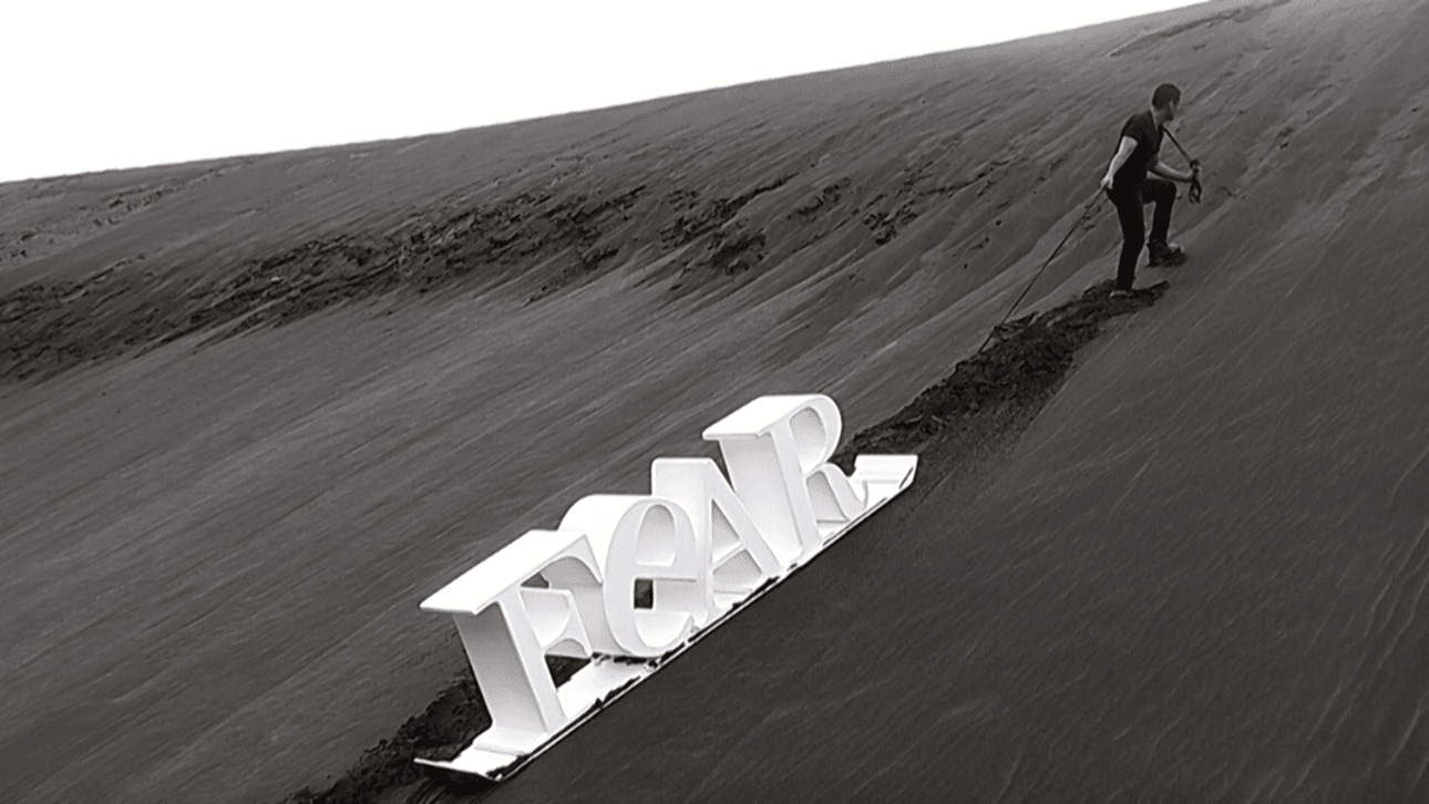 Circling back to the gallery’s foyer, the word fear seems to have a more precise meaning than when I first entered the gallery. In Shahriar Asdollah-Zadeh’s Fear Performance: The Myth of Sisyphus (2013) the artist pulls a sled carrying the word fear up a sand dune. The performance is slow, painful. The sled sits in the gallery, next to the screen of the performance, as a reminder of how present fear is in so many people’s lives. Fear Performance at first seems simple, but this work kept me thinking long after leaving the show.