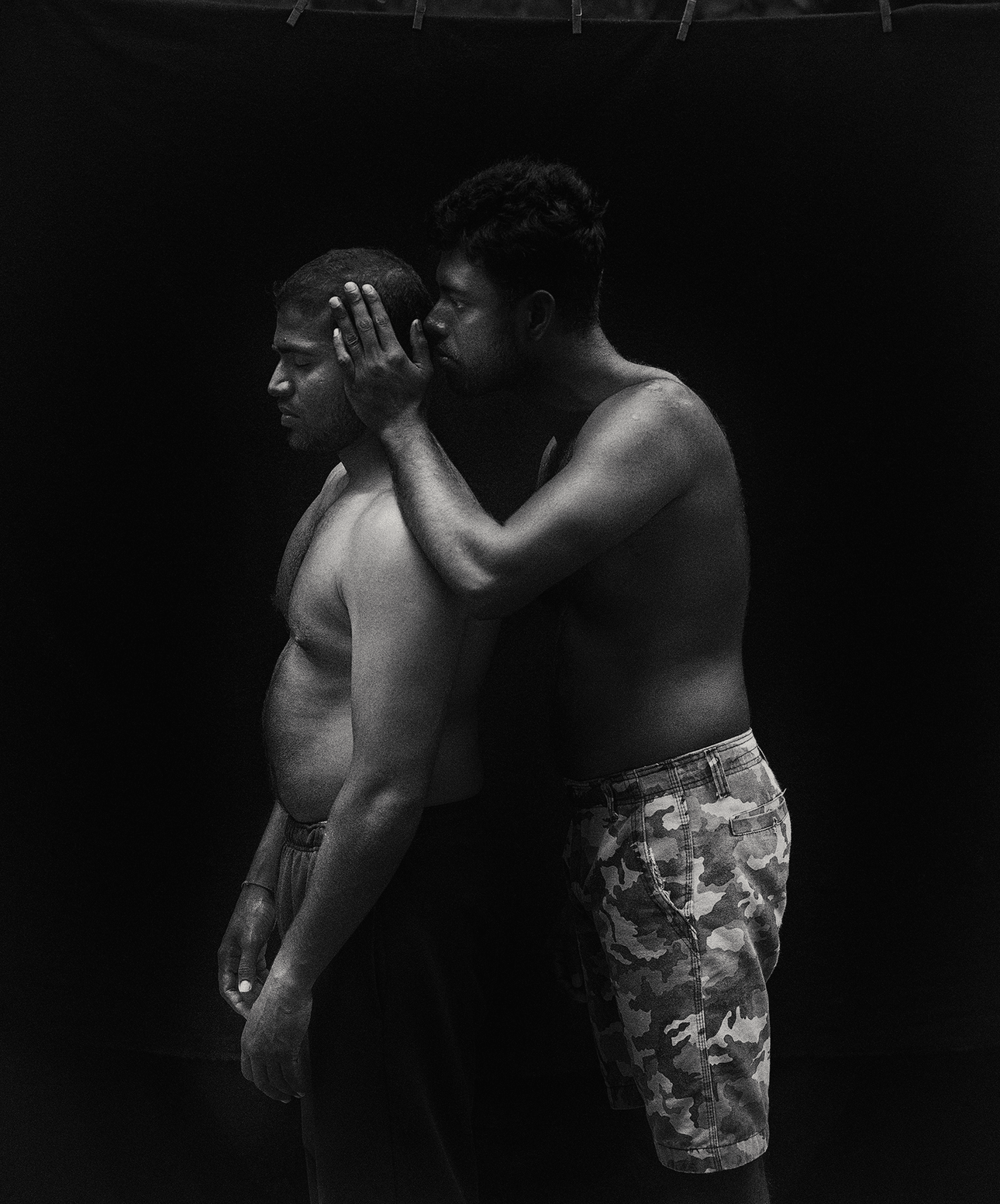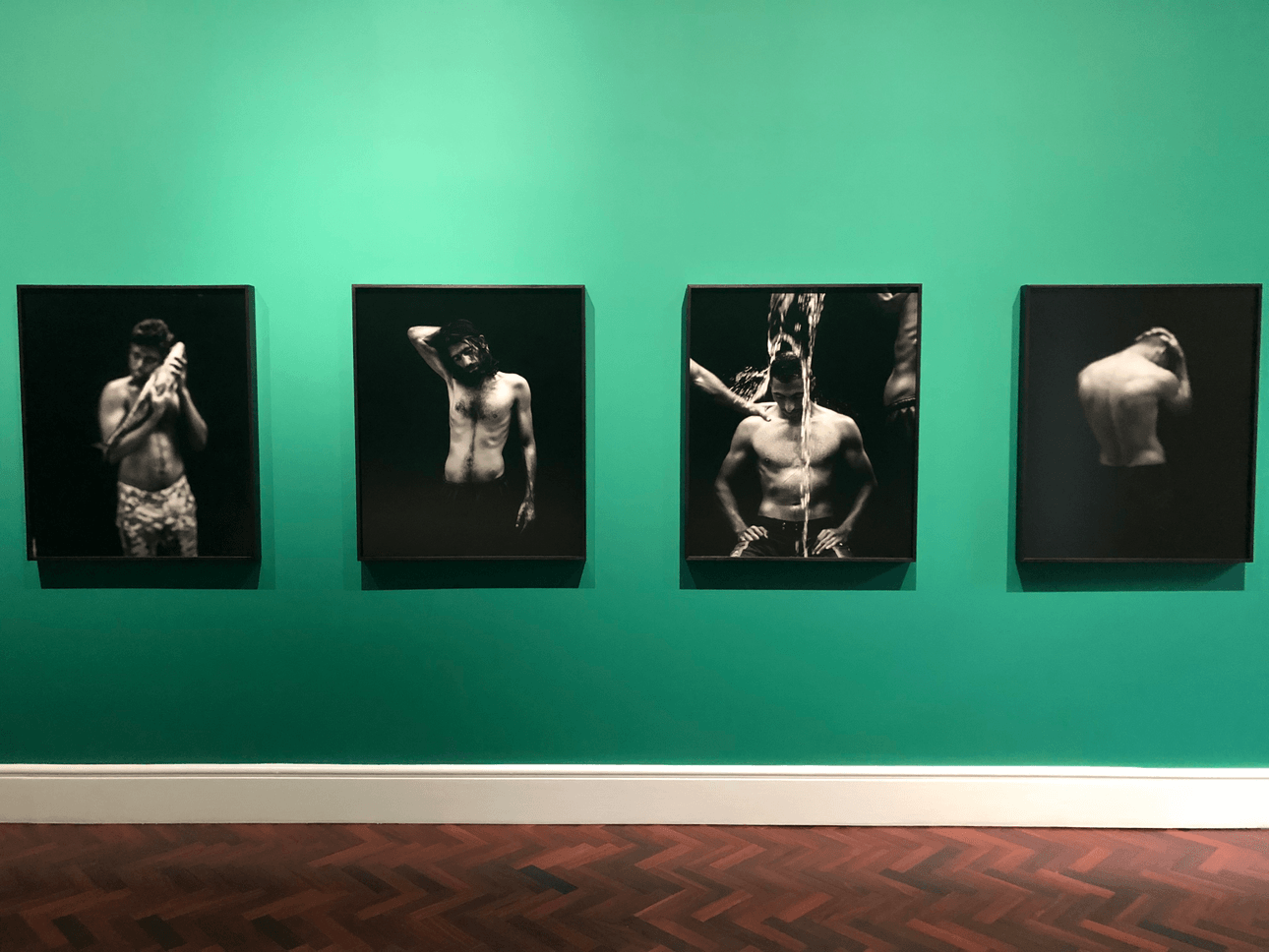The people of Manus become even more impossible to ignore in Hoda Afshar’s Remain portrait series (2018). These 10 black and white portraits sit on a green wall and show detainees from Manus Island. Although the detention centre closed in 2017, the men are still indefinitely detained in Port Moresby, and as the wall text tells us, “they remain in limbo.” The works are large, confronting. Ashfar humanises Manus Island by bringing audiences eye to eye with those unjustly detained.