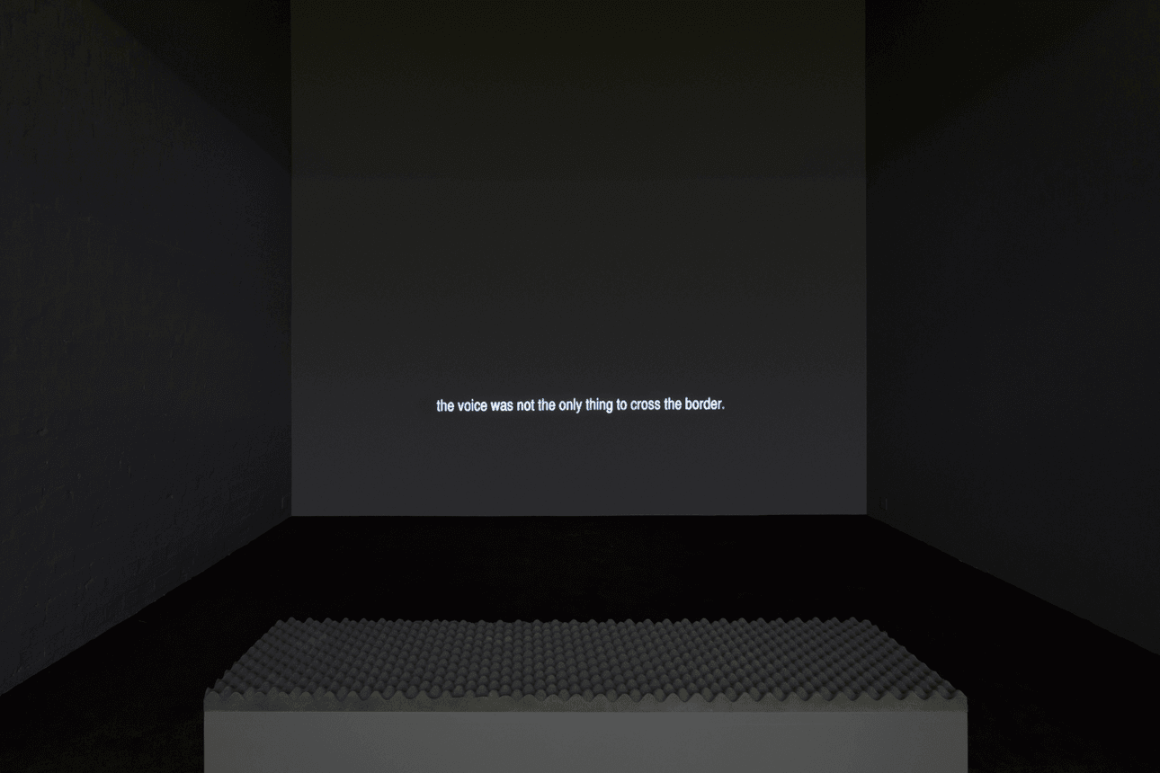Perhaps the exhibition’s crowning glory is Lawrence Abu Hamdan’s Language Gulf in the Shouting Valley (2013) from which the show borrows its name. In a darkened space, the film is ironically mostly a black screen with flashes of imagery. We hear a cacophony of voices, screaming and shouting with English subtitles. They’re recordings of Druze soldiers contrasted with the sounds from Shouting Valley, where divided family and friends call across to one other. Hamdan subtly reveals the complexities of living on a border without telling audiences what to think.