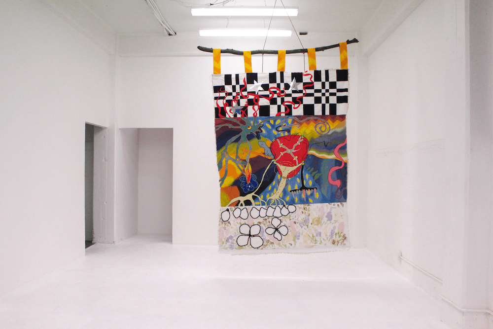 So, I thoroughly approve of this new term: sissymancy. It’s been declared with an exclamation mark by young Auckland artist, poet and appreciator of the occult Owen Connors. Sissymancy is derived from the ancient Greek word for divination, and also incorporates that pejorative ‘sissy’ commonly used as a sexual put down. Not in this exhibition. Connors has collaborated with a group of fellow artists – demonstrably queer but not specifically declared as either gay, straight, bi, cis, trans, intersex or other – to create this new order of divination, SISSYMANCY! an exhibition of three large quilts and a zine.