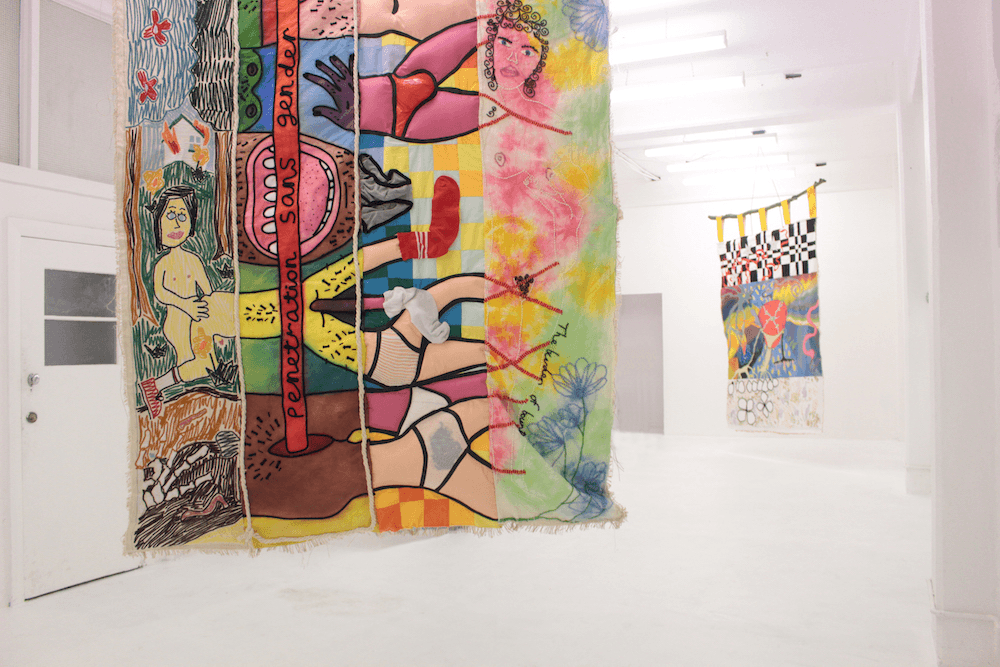 A new kind of sisterhood, SISSYMANCY! collectively encourages us – with joy – to affiliate, to take responsibility for ourselves while having tolerance for others. With all the hate and distress around sexuality and gender online (it’s troubling to have to even type the words ‘conversion therapy’), the generosity of this hand-embroidered project is timely. To make is to divine, and to be divine; to try to understand and hold understanding. And to be divine is also to be gorgeous. Which is exactly what these giant quilts are.