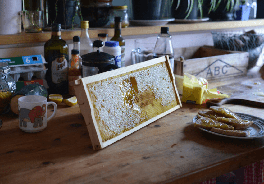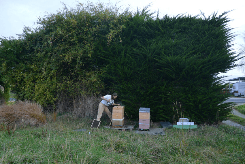 That came out of economic hardship. I had a van that blew up. A friend of mine in Auckland who has a beekeeping operation got in touch saying, “come work with me and my bees, I have an old car I’ll throw your way”. It turned out to be an amazing experience. I enjoyed the labour but also that bees produce an excess, you’re not harming them at all. He threw in a trailer and a couple of hives for me.
