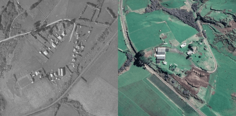 In other cases, wānanga is more about the kōrero and there is no necessary outcome or consensus that needs to be reached. Over the weekend, we held a wānanga at Pariroa Pā, a short drive out of Pātea, which was about gathering all the hapū of the marae together and talking through the different stories and histories that have been passed down through different whānau. Photos, videos, whānau manuscripts and kōrero were shared by many. Other resources like Paper’s Past and Retrolens made an appearance, the former recounting when Kīngi Mahuta, the third Māori king, visited the papakāinga in 1899, and the latter showing aerial imagery of the pā at the beginning and the end of the urban Māori migration, when local Māori left the papakāinga in search of work in the cities.