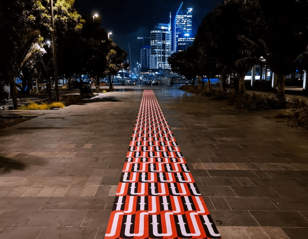 Even if artist and tā moko apprentice Fern Ngatai (Ngāti Porou and Tainui) could separate her queerness from her Māori identity, she wouldn’t want to. “It runs through my blood,” she says. They are one and the same, she says, each traversing the other, distorting like the whakarare pattern that makes up her artwork in Wynyard Quarter’s Karanga Plaza. Stand at either end of it and you’ll notice how the lines curve into one another or stop and separate from each other. Then, as your eye travels the length of the piece, those gaps suddenly morph into continuous straight lines. Figuring out one’s identity is confusing, with detours left and right, and pathways that continue, veer off, and even end.