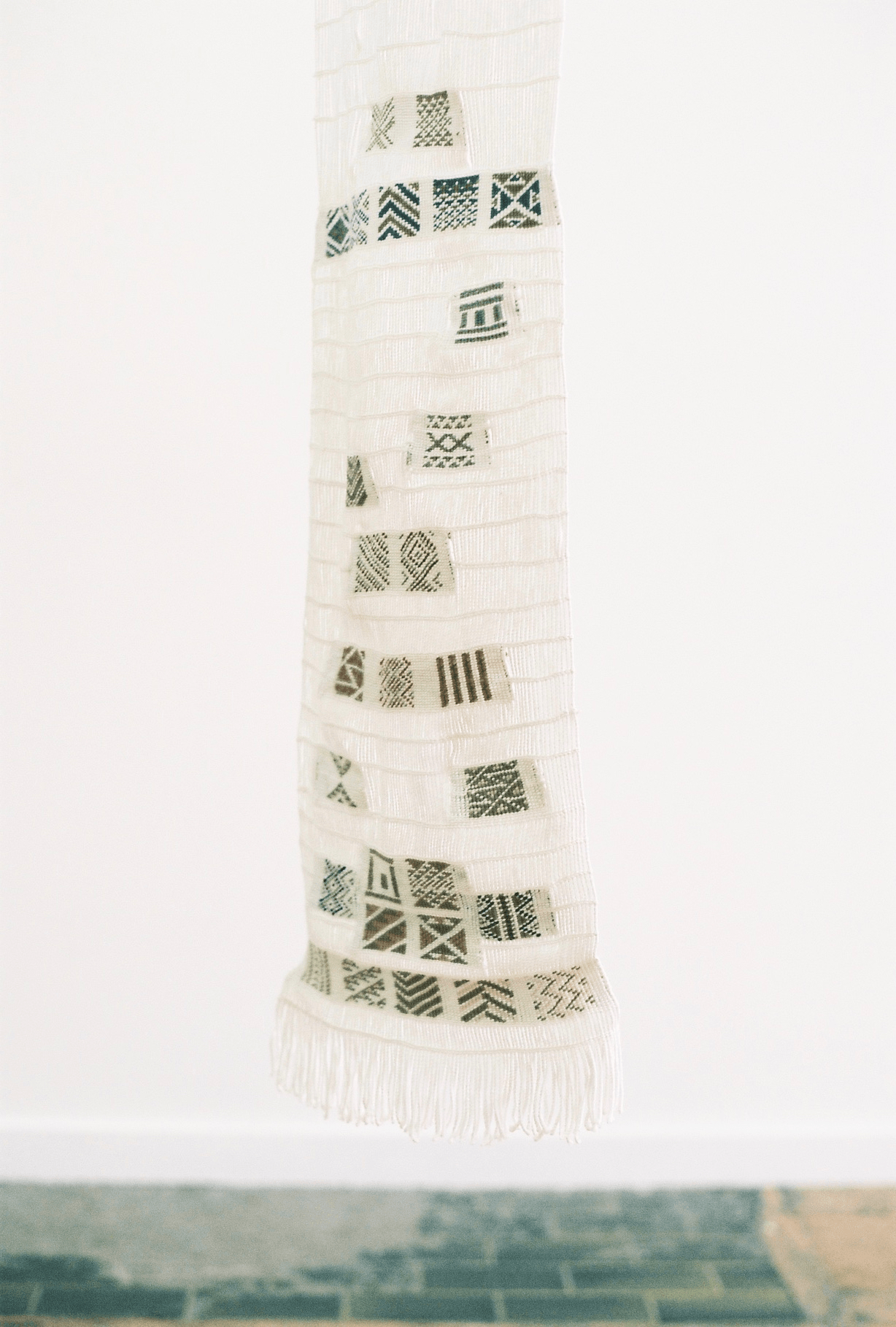 Your work, currently showing at Blue Oyster, has a tāniko pattern twined into the fabric. Where does the inspiration for this piece lie?