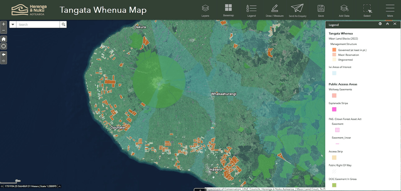 There’s public land, private land and then Māori land, which represents a grey area in an otherwise black-and-white legal worldview. Depending on whether you whakapapa to that whenua, you may have a right to access. Coming across a map of Māori land as someone with Māori whakapapa may be an experience of learning or growing your awareness of the whenua and its interconnectedness between land and community.