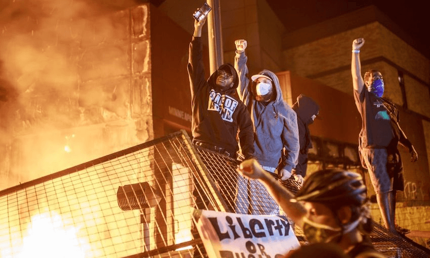 10,000 people marched in Tāmaki Makaurau to remember George Floyd. Through the science of whakapapa, they also marched to fight for George. What those cops did to him isn’t inexplicable, impossible, or unthinkable. Aotearoa isn’t a world apart from America. New Zealand has lived its history, has committed its crimes, this country has lit its own fires. My ancestors were caught in the flames, burned up at Ruapekapeka in 1846, victims of the Armed Constabulary Force’s campaign to pacify Hone Heke’s war of national liberation. I went to Ruapekapeka, saw the defensive trenches dug to resist cannonfire. The tunnels ran deep underground, further than I could see. If a young toa, fighting to defend his home from the constabulary, was hit by a rocket and set alight, how far down the tunnel could he have crawled? Howling? Something caught fire down there, just like it did in America. Strands of brown hair and sheets of brown skin peeled off in those tunnels and never stopped burning. Aotearoa is on fire, too, and I can smell the smoke.