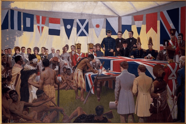 Although moves had been set in train earlier in response to missionary appeals for intervention by the British government, New Zealand was not annexed until January 14 1840 by Order in Council as a colony of New South Wales. Captain Hobson, who was despatched in HMS Herald to carry out the order, arrived in the Bay of Islands on January 29. Lord Normanby’s instructions to Hobson acknowledged New Zealand as a sovereign state even though it consisted of numerous independent tribes with only the confederation of northern tribes having any semblance of a larger polity. Hobson was instructed to obtain the surrender of that sovereignty to the British Crown by the free and intelligent consent of the “natives”. They had to be persuaded that the sacrifice of their national independence would bring the benefits of British protection, law and citizenship. The instructions specified that Hobson was to treat for sovereignty over the whole or part of the islands that the natives were willing to cede. He was warned that they might feel distrustful or humiliated by British encroachment, but these impediments he had to overcome by mild ness, justice and the sincerity of his intercourse with the aborigines, If necessary, he was to engage their consent by presents and other pecuniary arrangements. Once sovereignty was obtained, Hobson was to contract with the chiefs for the sale or cession of lands to the Crown only. Thereafter he was to issue a proclamation that all land titles would emanate from Crown grants. Hobson’s first duty as the official protector of the aborigines was to confine his acquisition of land for British settlers to districts the ‘natives’ could alienate without distress to themselves. It was on the basis of these instructions that the Treaty of Waitangi was drawn up and subsequently signed on February 6, 1840.