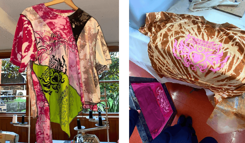 Now 23, Hailes-Paku helms Karaoke Superstars – a small, slow fashion brand based in Ōtepoti/Dunedin. Each one-off piece, with its chaotic prints and visible stitching, is designed, sewn and printed by Hailes-Paku, usually while she listens to 80s music. Her collections are heavy on hoodies and oversized t-shirts – a mirror of her own everyday style.