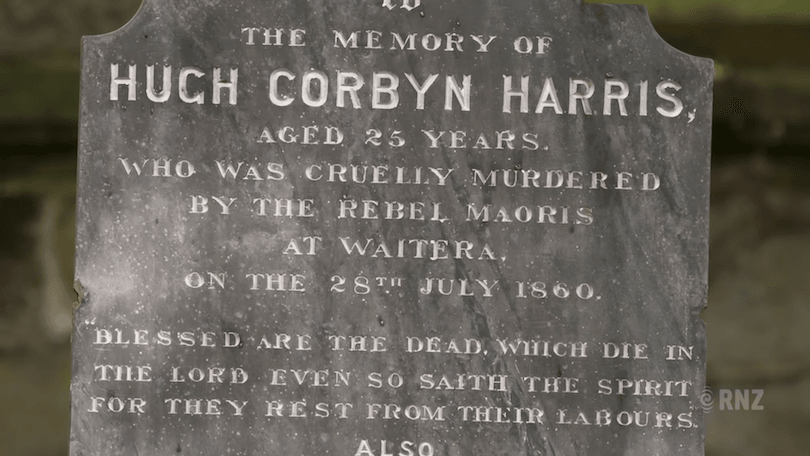 Of course the real price was paid by Taranaki iwi over the next 160 years. In a particularly heartbreaking scene, Forbes and O’Malley visit the graveyard at the Taranaki cathedral. The headstones read: “Killed by hostile Maoris”, “those that fell in the Maori trouble of 1861” and “cruelly murdered by the rebel Maori at Waitara.” At a far corner of the church grounds, a single headstone lists a handful of rangatira. We learn from O’Malley it was considered offensive to let them be buried alongside British officers in the cemetery.