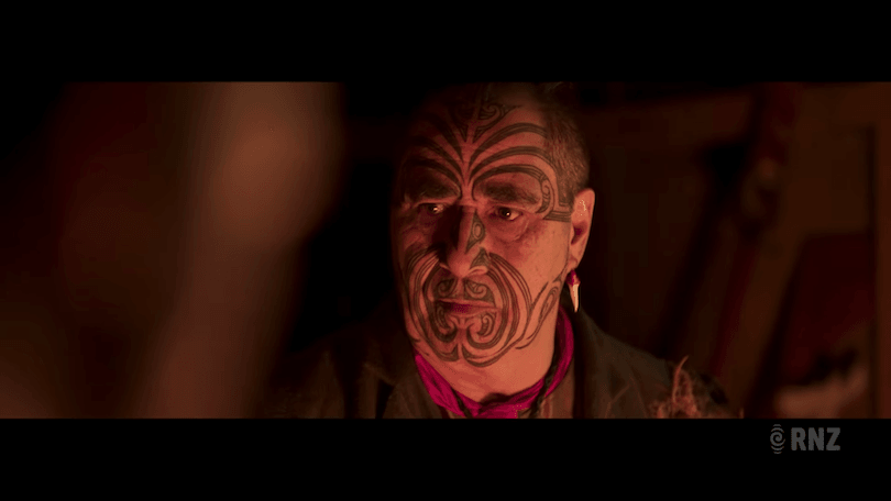 Another re-enacment shows a last ditch attempt at diplomacy, a hākari for iwi and government to meet and negotiate. Taranaki iwi make plain their desire not to fight with the settler government, with Hapurona delivering his famous karakia o Te Maungarongo, advocating for peace. Iwi historian Dr Ruakere Hond recites the words of the famous karakia over images of Hapurona delivering the same. It’s a moment filled with hope and ultimately, sadness.