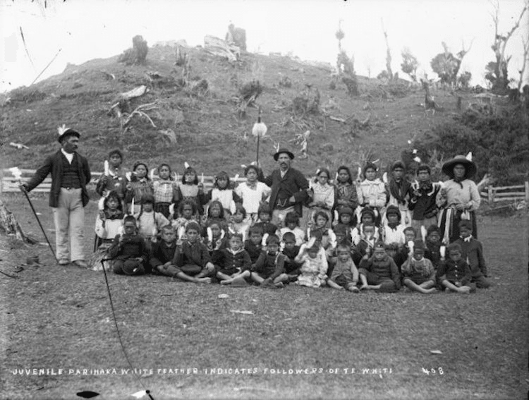 At 5am on November 5, 1881, 1,600 soldiers and policeman in the Armed Constabulary, led by Native Minister John Bryce, invaded the Māori settlement of Parihaka in central Taranaki. They were greeted not with armed resistance or hostility, but by singing children who carried baskets of food. The several thousand residents sat quietly on the papakaingā and offered no resistance to arrest. The Crown’s military force were welcomed to the community with open arms.