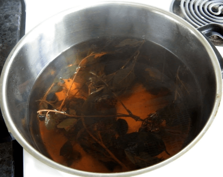 Cover your kūmarahou leaves with cold water (about 1.5 litres) in a stainless steel pot. Bring this to the boil and simmer gently for 15-20 minutes. Remove the pot from the heat and strain plant material from the water using a clean cloth or muslin. This water is your wairakau. Once the liquid has cooled you can store it in the fridge until needed. Return the spent plant material/leaves to Papatūānuku. Never discard your used leaves in the rubbish.