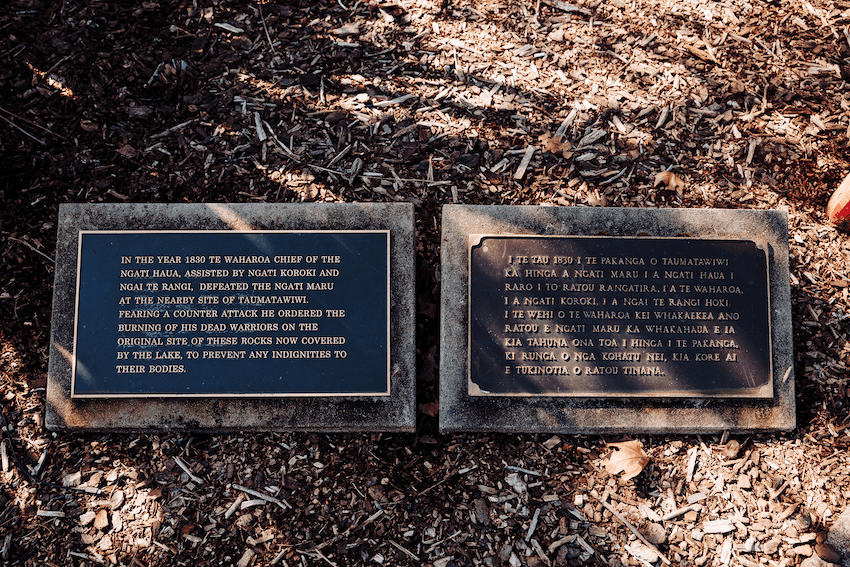 Described as the “Waterloo of the Waikato”, details of the battle itself are well-documented. Perhaps less well-known is that it is from the resulting stench that the now picturesque Lake Karāpiro, and surrounding area, derives their name: karā (the type of rock where the bodies were burned) and piro (smell). The battle site and the remnants of the rock remain significant sites for Ngāti Koroki Kahukura and Ngāti Hauā. The smoke-filled winds from the pyre carried a considerable distance northwards from the site, past where the township of Cambridge is now situated, giving the name Hautapu (Sacred Winds) to the area.