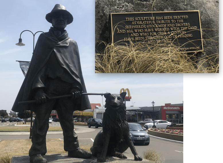 It’s ironic because the Manawatū is one of the sickest and most polluted rivers in the country – and yet the monument in the town centre wants us to believe the illusion of a kindly shepherd and his bounding dog. To think this statue only went up in 2003 is shameful. Selective remembering is a key to the ongoing project of colonisation.