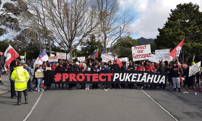 The group, led by local hapū Ngāti Tamainupō, is protesting for the protection of historic Māori food pits at risk of being destroyed by a proposed housing development. On Friday, June 12, after 37 days of protest, the group made a hīkoi to the Waikato District Council. A petition using the hashtag #protectpukeiāhua, started online four days ago to protect the food pits, already has more than 2,500 signatures.