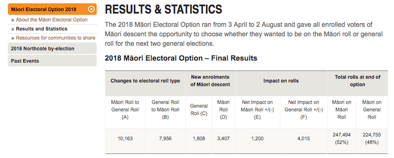 Just to get us all on the same page, a quick refresher on what the ‘Māori electoral option’ is and why it matters. When a voter of Māori descent first enrols to vote, she or he can choose whether to go on the Māori roll or the general roll. That decision then determines whether she or he casts an electorate vote in a Māori or general seat.