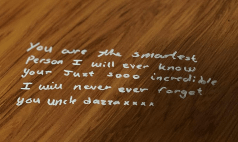 In my brother’s eulogy, I wrote that he could mend or make anything out of physical materials. Wood, metal, cloth, steel, even plastic – he could turn his hand to anything. The packed auditorium chuckled with recognition. Among his many inventions, the pneumatic beer-bottling machine is the one people will still be talking about in 50 years. Since he died, the word I’ve most often heard to describe him is “clever”. On the lid of his casket my daughter wrote in careful print: “Uncle Dazza, you are the smartest person I will ever know.”
