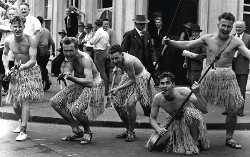 For 20 years Māori had written to the engineering school at Auckland University asking them to stop an annual event where students would dress up in grass skirts and perform the university haka ‘Akarana’ as a capping day lark. By the 1970s it had morphed into a grotesque mimic, where the engineers would draw penises and curse words on their body – a caricature of tā moko – get very drunk, charge around the university causing chaos, and stop traffic up and down Queen Street to perform the haka.