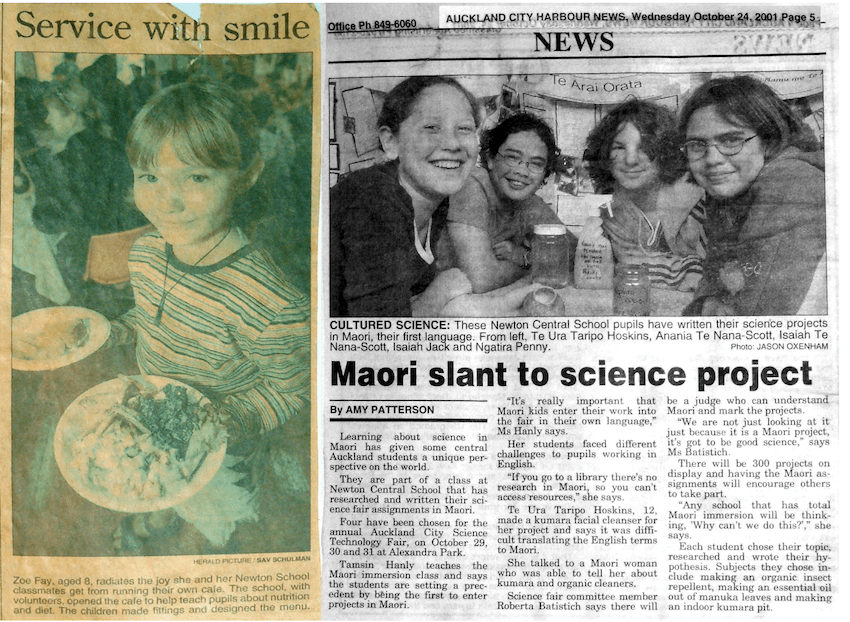 Tamsin: We were the first science fair entries in Māori ever, and they had to get in Māori language judges to mark them. So that was cool.