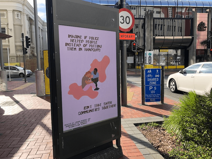 Artists like Māori Mermaid who used her talents to create powerful images that showed a different way of policing was possible; images that hundreds of people then crowdfunded into giant street posters near Wellington, Auckland and Christchurch police stations.