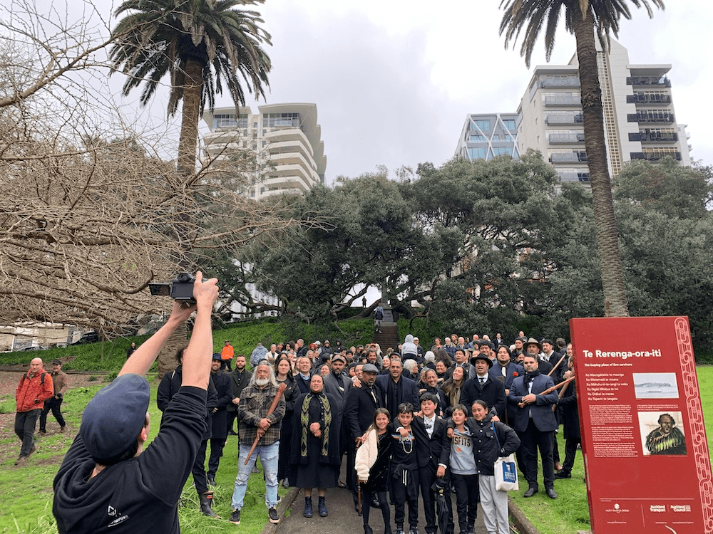 As the sunrise peaked over the waters of te Waitematā on a windy, misty morning, a karanga warmed the cold air atop Maungawhau. Lines of traffic formed on Auckland’s roads below at the same time as lines of whakapapa were acknowledged. On the morning of September 18 2023, Ngāti Whātua o Ōrākei visited Maungawhau (Mount Eden), the Ōpoutūteka waterway (Cox’s Creek, Herne Bay), the slopes of Taurarua (Judges Bay, Parnell) and te Rerenga Oraiti (Point Britomart, Emily Place) for a special commemoration. Today’s proceedings were familiar to some, as last year a similar haerenga was run for this same kaupapa.