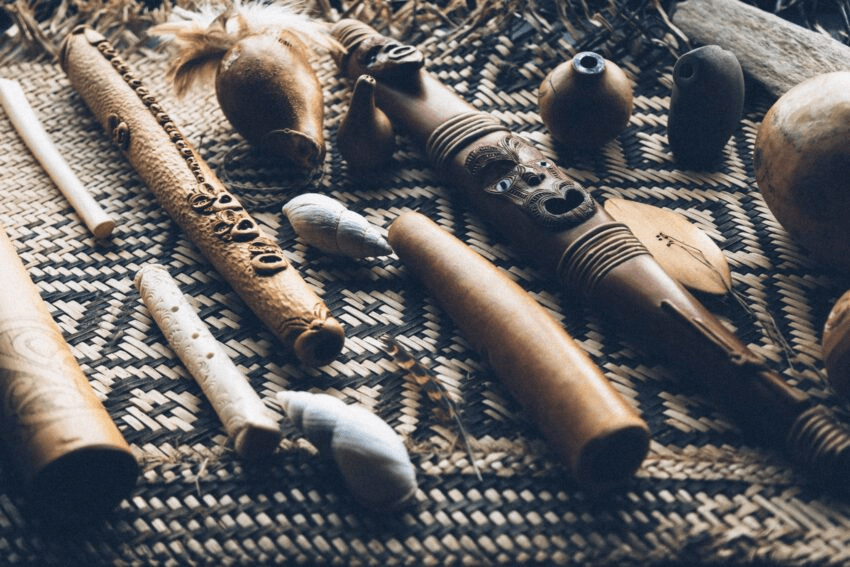 There are more than 40 taonga pūoro that exist today, each one an extension of the voices of the natural world and spiritual realm within te ao Māori. The heartbeats of Papatūānuku, the earth mother are the basis of musical rhythms. Rangi, the name of the sky father, doubles as the word for tunes. These flutes, trumpets, percussion and whirled instruments are literally gifts from the gods. And while they’re intrinsically connected to spirituality, they can also be used to welcome a new day, as a call to arms, to make someone laugh, or even to flirt with your latest crush.