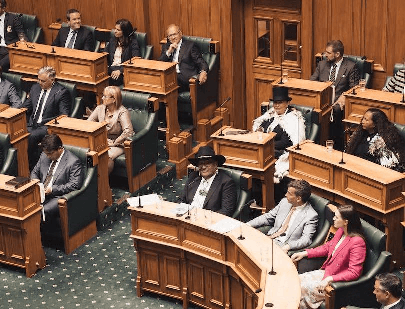 It was an unmistakable break from the stuffy traditions of parliamentary attire when Te Pāti Māori co-leader Debbie Ngarewa Packer was sworn in as an MP in 2020. Draped across her shoulders was a korowai invoking the white feathers of the pacifist Parihaka settlement, and perched on her head a jaunty top hat, a nod to those worn by kuia ahead of the signing of the Te Tiriti o Waitangi. This was a vivid expression of a new kind of politics – and it was rather miraculous she was there at all.