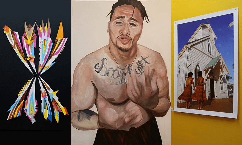 Tavola curates her art carefully, selecting pieces for her shows that speak to the heart of the community she’s involved in. Looking straight through the doors from the tiled arcade is a portrait of social media star Boom Bullet, by artist Niutuiatua Lemalu. He’s well known in the Pasifika community, and the work is a prime example of how when art is taken out of its societal context, it can lose meaning.