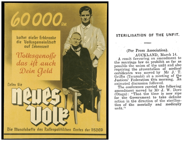 In 1921 New Zealand’s parliament passed the Immigration Amendment Act, which called for ‘race aliens’ to be excluded from the colony. In 1928 parliament voted for the Mental Defectives Amendment Act, which allowed for the indefinite isolation of undesirable breeders in psychiatric hospitals – homosexuals, the physically or intellectual disabled, petty criminals, and troubled children.