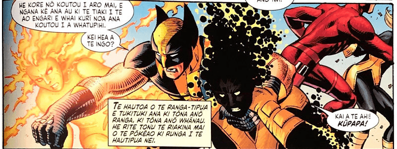 “Tīmoti’s [book] is factual, it’s not an imagined topic. That’s its own genre. Hare Pota is the epitome of imagination, that has its own genre. This Marvel comic contains conversational and interactive dialogue, it has argumentative and combative language, as well as colloquial sayings and onomatopoeic words,” explains Papa.