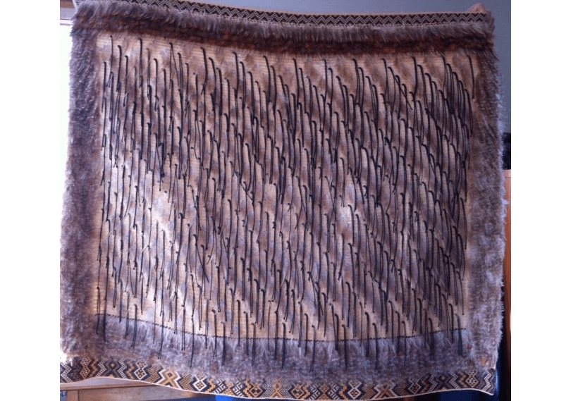This is a korowai woven by my great grandmother Rangimārie Hetet for her eldest child – my grandfather. It took her nine months of her life. Hand woven from muka, hukahuka and spotted kiwi feathers. It is the ultimate example of a korowai: