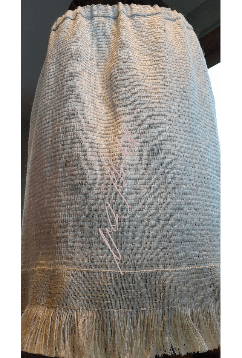 Here is the inside of one of my kākahu, not often seen. I show it to you now and stand with the hands of six generations of weavers in my family holding me up. Thanks for sharing today with me. Ngā mihi ki a koutou katoa.