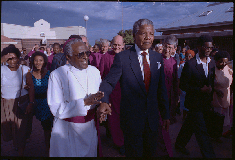 “The day before my court date, I’m sitting out the back in the cells thinking ‘jeez, what am I gonna do?’ Then the brain wave came to me. Bishop Desmond Tutu had been invited over by the Anglican church to come and do a speaking tour. Interest was still very high in apartheid South Africa. My mum knew George and Jocelyn Armstrong, who were part of the organisation that brought him over.