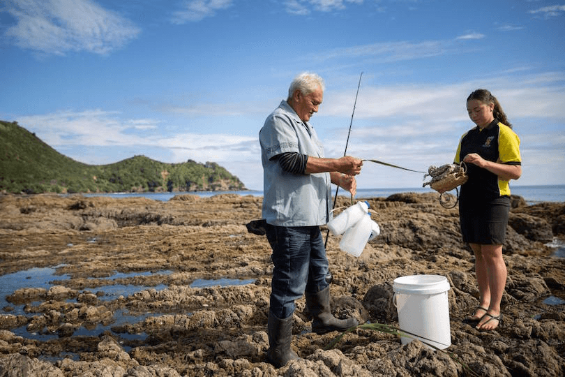 I could keep listening to Danny and his hidden metaphors forever. But I’m not Danny’s key audience. After school, we pick up Danny’s moko Horiana and head to the rocky shoreline, so Danny can show us how the kit he’s been explaining to us works in practice.