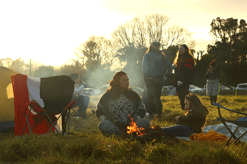 On the roadside fires were lit to keep protectors warm throughout the bitterly cold night but also to symbolise ahi kaa, the home fires, synonymous in te ao Māori with occupation and those who live on and rely on the land.