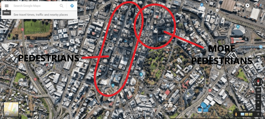 Much of Auckland’s CBD is crying out to be pedestrianised. Start with Queen Street. The lower half of the city’s most famous road, from Customs St up to Mayoral Dr, is an obvious candidate to become a pedestrian mall. The speed limit is already 30km/h and has been for a decade. Cars are outnumbered by pedestrians on the road by a ratio of 4 to 1. There are no parking buildings; few businesses rely on car traffic. The area is also badly in need of a revamp. Pedestrianising the road would make it a proper tourist attraction, rather than a place to be simultaneously underwhelmed and overstimulated before boarding the ferry to Waiheke.