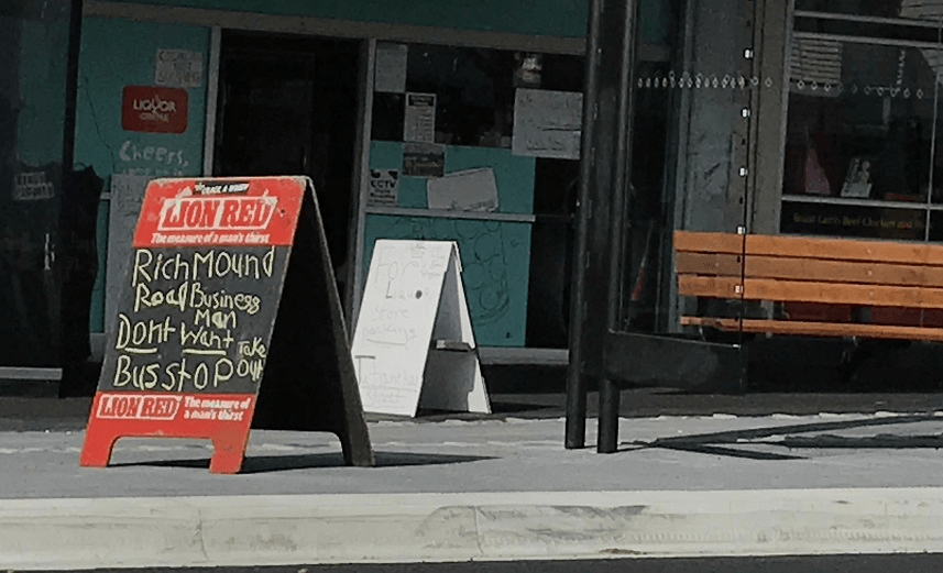 Instead, the locals did a lot of shouting and lecturing. The man who owns the liquor store was furious: there’s a bus stop outside his shop now and it’s clear that if he could rip it out with his bare hands he would.