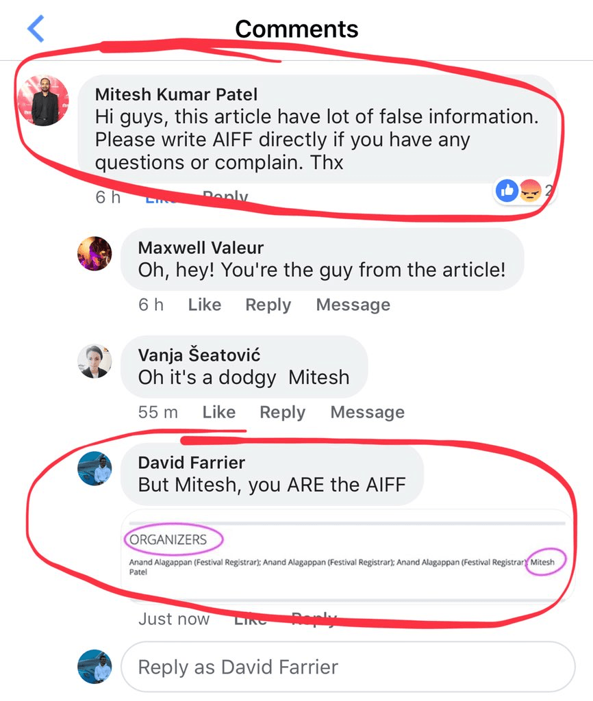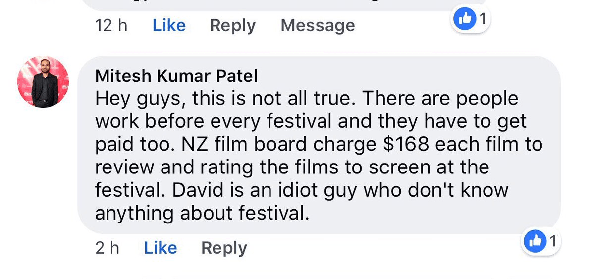 By this point, Mitesh had blocked me on Facebook and wouldn’t email me back answers to questions like “Why do you have so many film festivals” and “Why did you set up in New Zealand?” and “Why do many accepted films not even play?”