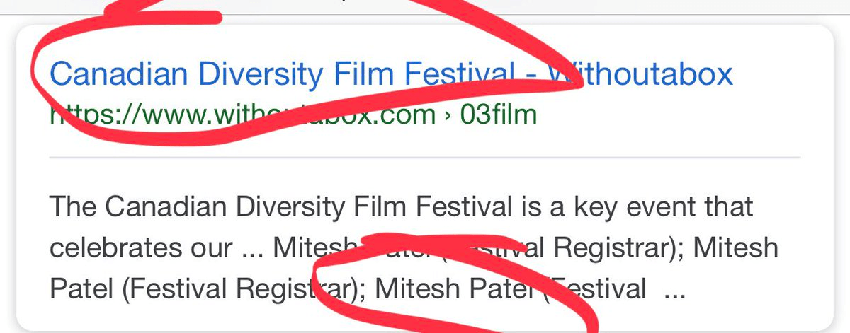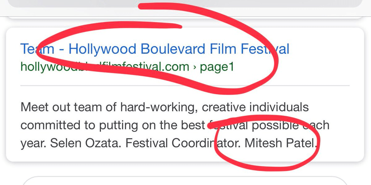 OK, so where were we? That’s right. A man called Mitesh Patel, who appears to live in Chandler, Arizona, is behind a bunch of film festivals, including The Chandler International Film Festival, the Canadian Diversity Film Festival (what?!) and the Hollywood Boulevard Film Festival.