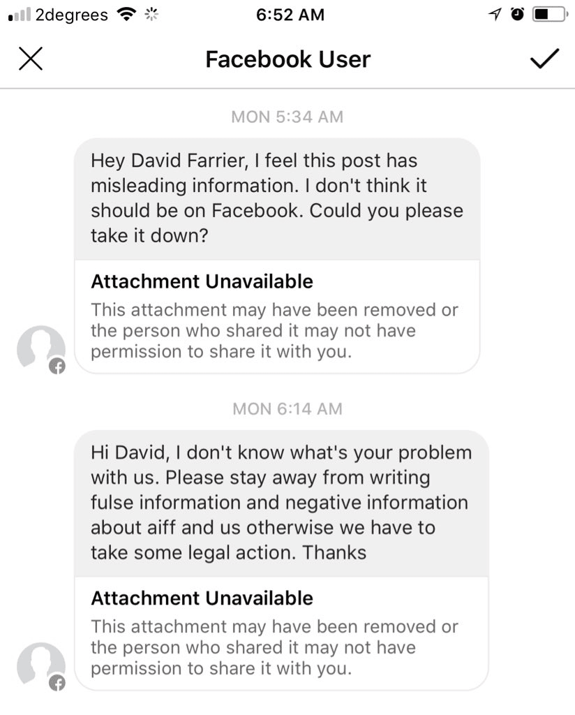 I was also fascinated by the way Mitesh Patel had just casually fobbed me off this whole time, failing to answer questions, blocking me on Facebook, and probably sending me this threat of legal action on Facebook (I only assume it’s him, because whoever sent it had blocked me):