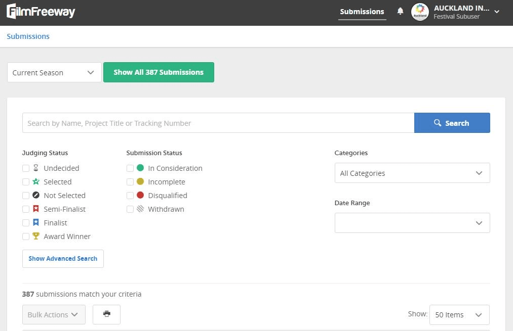 By now I’d been leaked the festival’s FilmFreeway account, which showed at least 387 submissions to the AIFF: