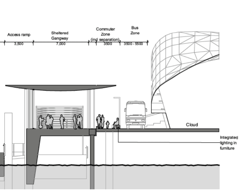 So the plan is to squeeze those hundreds of people into a relatively narrow path. With a maximum of just 3.5m for pedestrians, it only takes a couple of people to effectively block the path. I can already see people missing their hourly ferry because of congestion on this path which has been narrowed to accommodate buses.